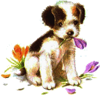 Somewhere my doggie pulls and tugs The fringes of rebellious rugs, Or with the mischief of the pup Chews all my shoes and slippers up, And when he's done it to the core, With eyes all eager, pleads for more.