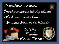This is for another dear friend. I don't know who she is, but she does. This one's for you sweet lady. I didn't realize the importance of an anonymous person in a webring until I met Kitty. I told her tonight that since I can't know who she is, I will treat every friend in my life as though they are her. She is terriffic. In a way, not knowing her identity will enhance my life. Every woman I know is potentially, my kitty. She took the time to get to know me and I felt so special. Thankyou my friend. Thankyou.